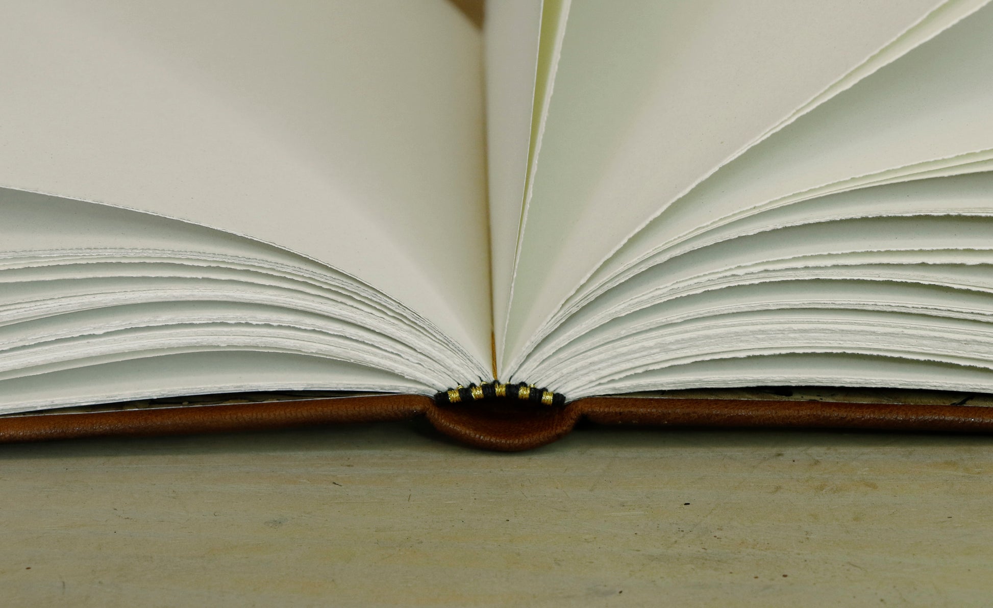 The book a little over 6x8 inches (15.5x21 cm). It has 150 pages (300 sides) of Favini Shiro Alga paper, an ecological paper produced from algae in Venice Lagoon. The seaweed particles are visible on the surface to give a unique natural look and its ivory color makes it fit perfectly the overall old feel of this book. The paper is hand torn, has 120 gsm, and it will hold well ink, dip pens, gel and ball pens, markers and any dry media.