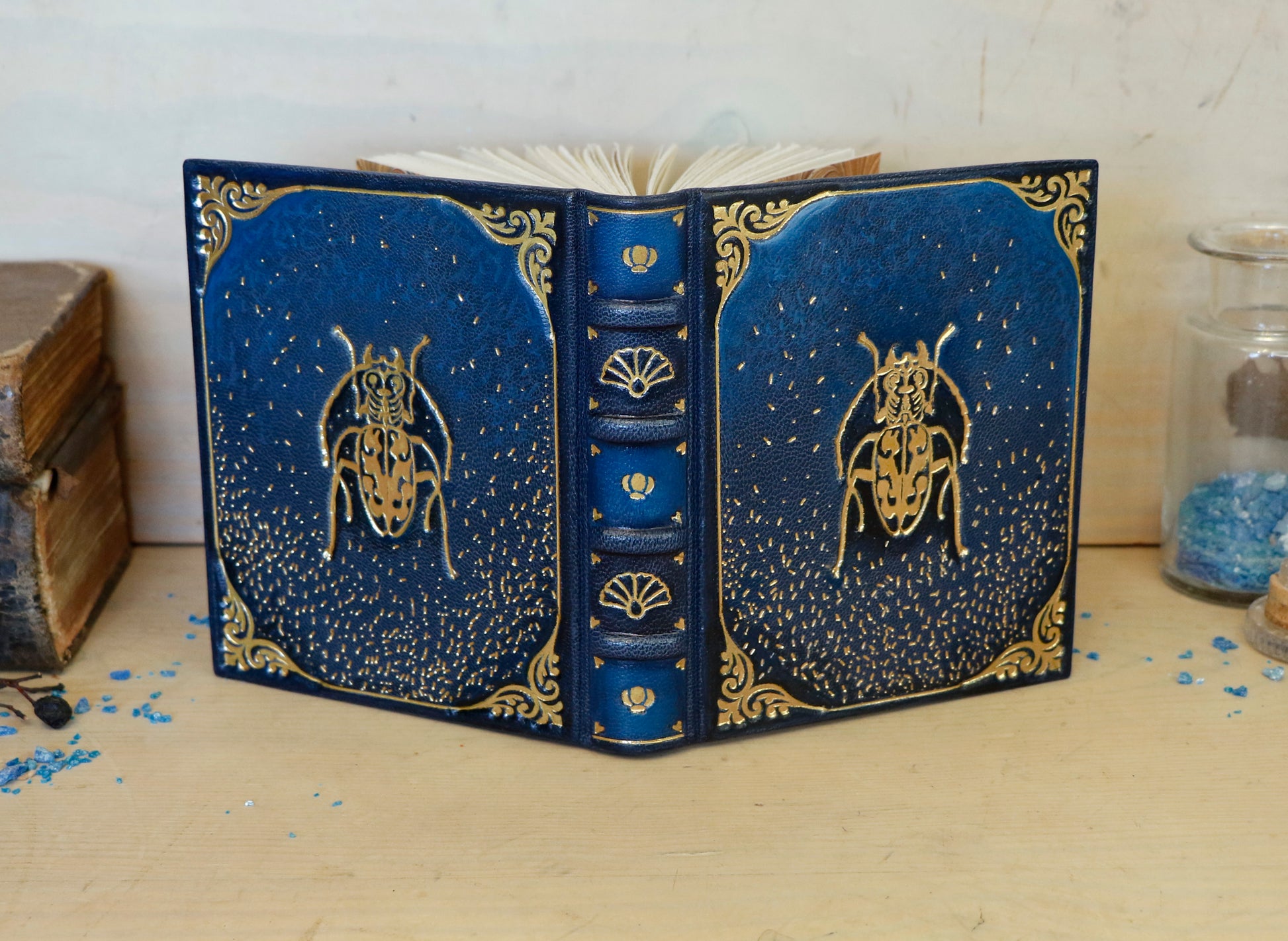 Blue leather journal with gold tooled decoration. Scarab of the Night
