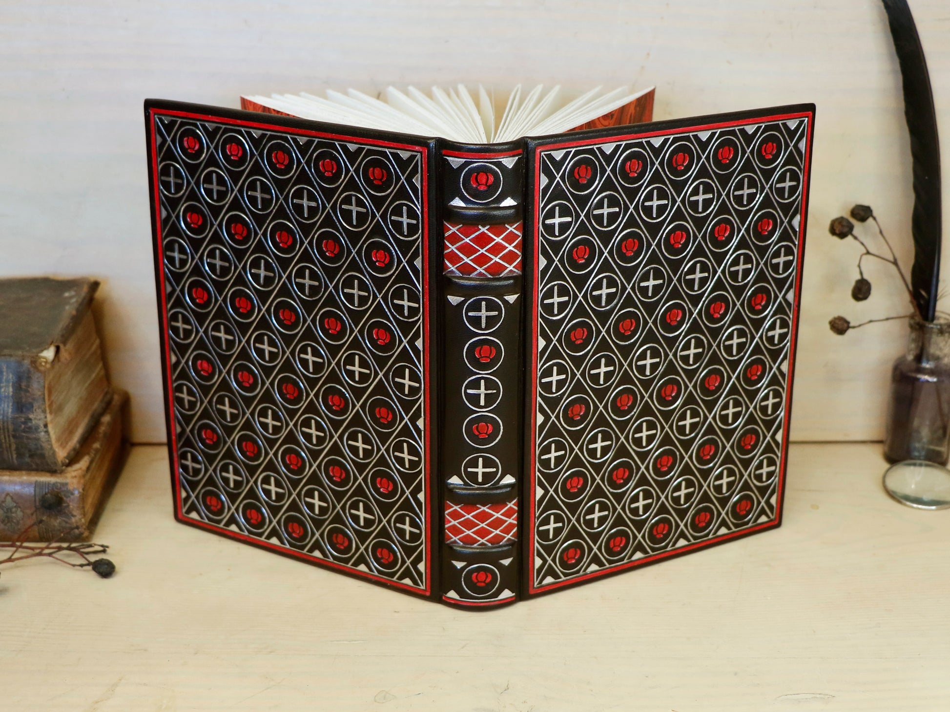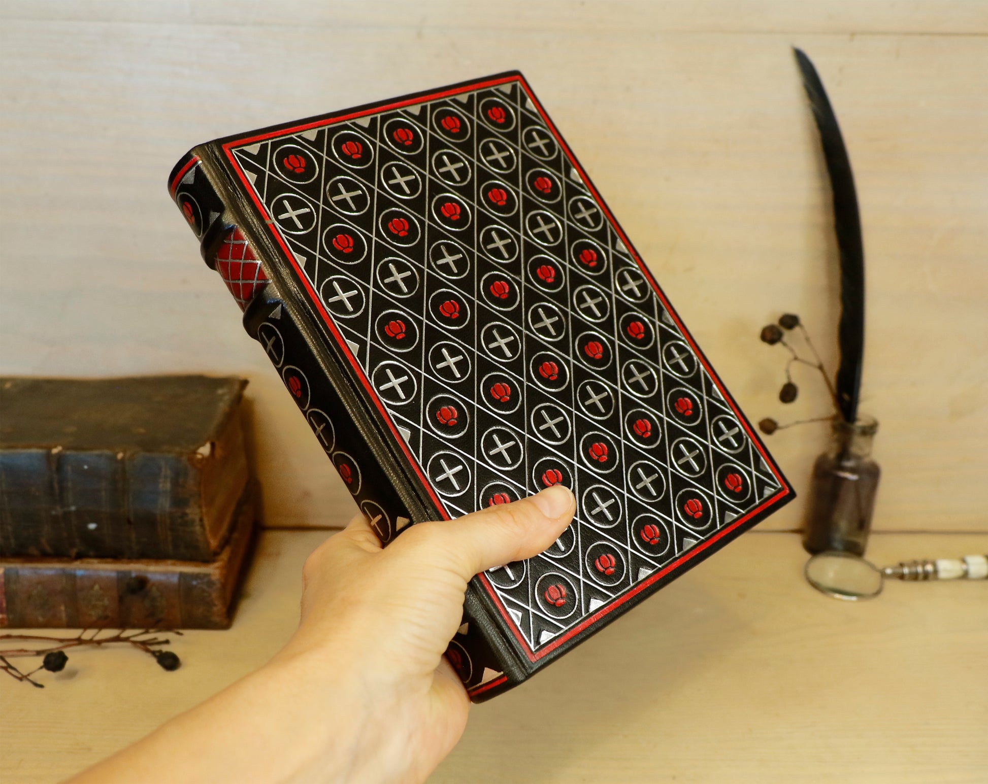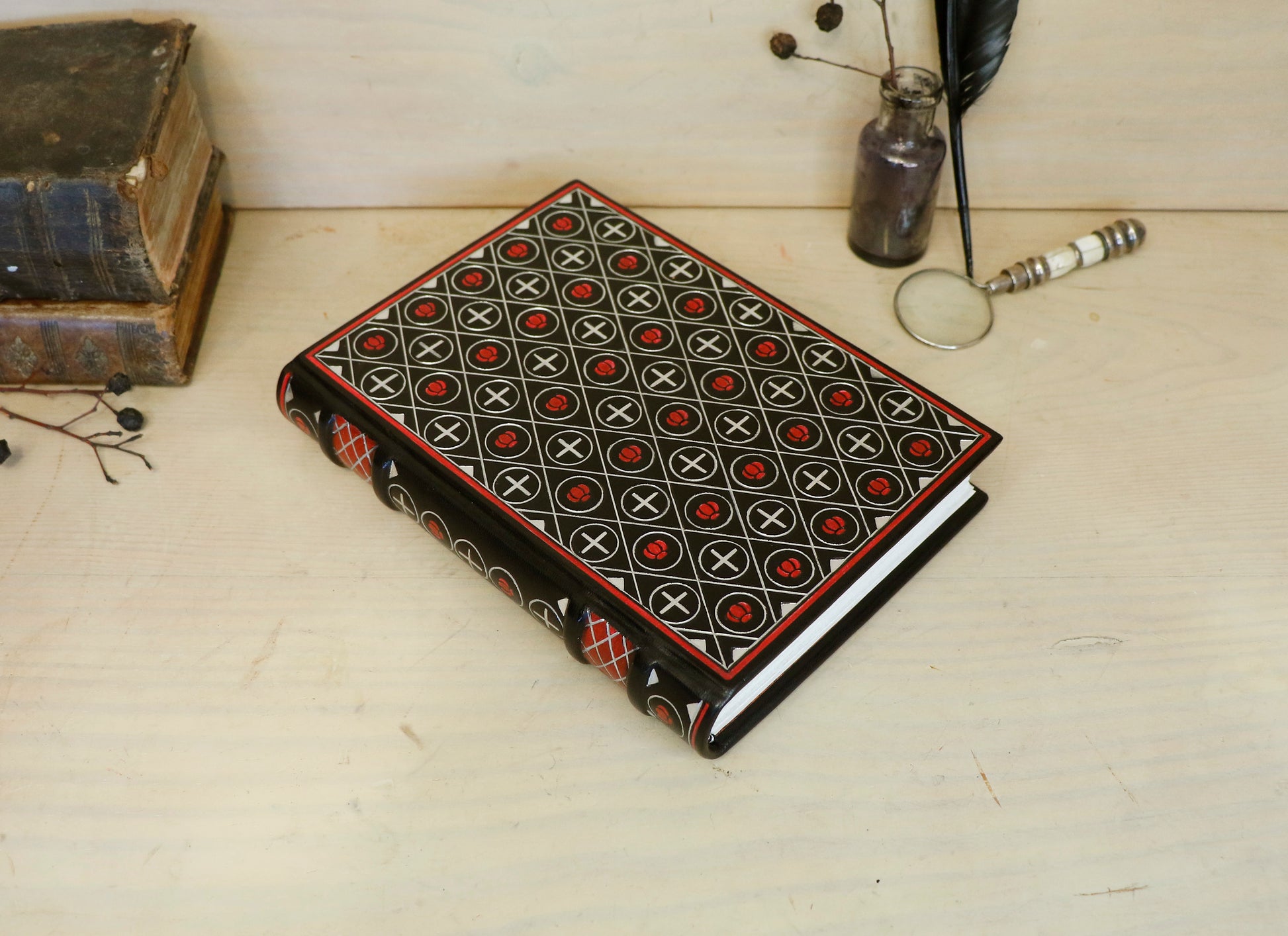Black Leather Journal with silver and red tooled decoration - The Black Reliquary